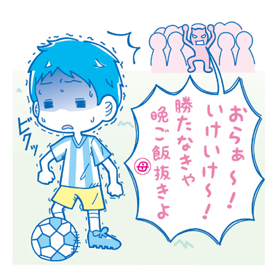 しつこいようですが、子どもの頃はサッカーを楽しむことが大事です。それがサッカーを好きになって上手になる早道だというのが、指導者たちのご意見でもあります。熱く応援してあげることは必要ですが、負けて学ぶこともあります。小学生時代のサッカーは、子どもが成長するための教育の場でもあるのです。「負けたら晩ごはん抜き!」とか、エキサイトして罵声を浴びせるような応援は避けましょう。それでは、恐ろしいフーリガンたちと変わりませんよ。勝ったら「すごかったね」とねぎらってあげる、負けたら「また次を頑張ろう」と励ましてあげる。それくらいがちょうど良いのです。