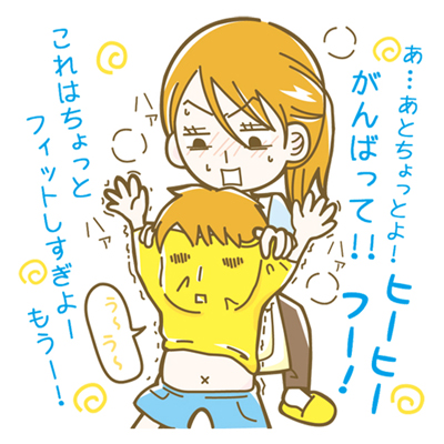 あわててママは手伝おうとするも、もがく姿がおかしくて思わず笑ってしまい、力が入りません。親子で奮闘すること数十分、やっとの思いでお風呂に入れたとか。機能性の高いアンダーシャツが自力で脱げなくなるとは、まさかの落とし穴ですね。