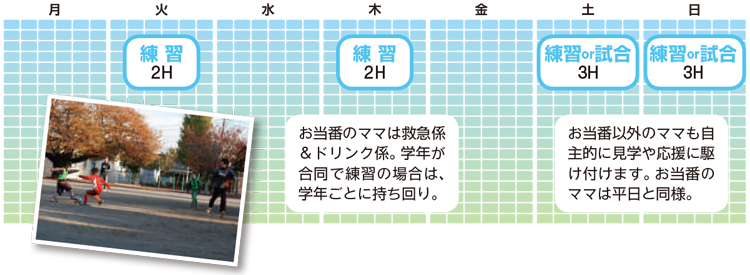 また、練習は土日祝のみとしているチームも。アットホームな雰囲気でサッカーをやらせたい、ママもできるだけチームをサポートしたい、という人向き。