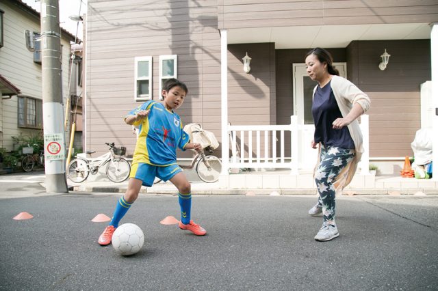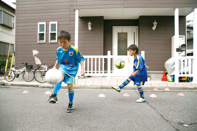 自宅前で1時間ほどドリブルやリフティング。スクールに早く行きたくてうずうずしている2人。