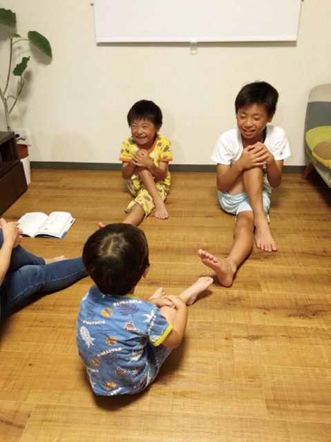 「長男は体が硬く、股間節が硬いので、お風呂あがりに時間があればみんなでストレッチをして、私が本を片手に解説したりもしています」