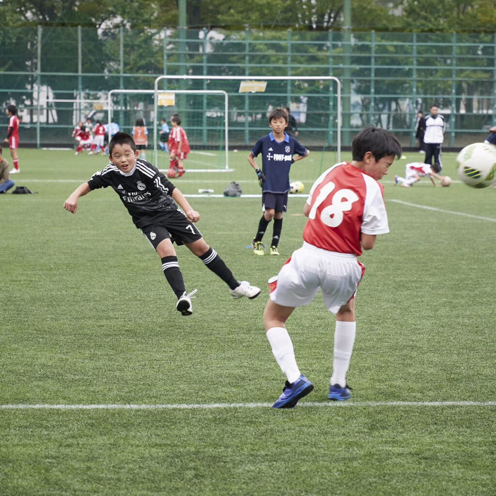 高いボールの争いで、相手との競り合いで思いっきりぶつかって・・・鼻血を出すこと、結構ありますね。 また、夏の暑い時期の活動中には、暑さで鼻血を出してしまう子もいるかと思います。 鼻血がドバーと出てしまうと、一瞬焦ってしまいますが、そこはまず落ち着いて、止血します。昔ながら、に、上を向かせて首の後ろをトントン・・・という対処をしている方はもうさすがにいないと思うのですが、これは効果はありませんので、やめましょう。 上を向かせてしまうことによって血が口に流れてしまい、気分を悪くして嘔吐してしまうこともあります。慌てて横に寝かせる必要もありません。 鼻血の対処法の基本は、 ① 頭を軽く前に傾けて、小鼻をつまむ(水の中を潜るときのようにぐっとつまみます)。 ② 口に流れてきた血は吐き出す。 ③ 眉間のあたりを軽く冷やす。 です。 出血が止まってきたら、特に詰め物を鼻に入れる必要はないですが、すぐにリプレー(プレーに戻る)する場合、血がちょっとでも流れてきてしまうとグラウンドに戻れませんので、その時はティッシュや脱脂綿のようなものを軽く詰めてもよいでしょう。 ただし、詰めるときもあまりぐいぐい奥まで詰める必要はありません。軽く鼻の穴を埋める程度。小鼻のあたりまでで大丈夫です。 あまり奥まで詰めてしまうと、血が止まったと思ってその詰め物を取ってしまうと、せっかくかさぶたになったものが剥がれ、また出血してしまう、ということがあります。注意してくださいね。 それから、詰めるものも清潔なものであることもご確認を!救急箱の中で何年も前から眠っているような、埃がたっぷりかかった脱脂綿などはくれぐれも使わないように!^^;。