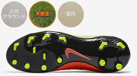サッカーシューズのアウトソール(靴裏)に、違いがあるのを知っていますか? とくにスパイクは、硬い土のグランドや天然芝など、プレー環境よってアウトソールの形状が違っています。今回は、プレー環境に応じたアウトソールの特徴ついて解説します。