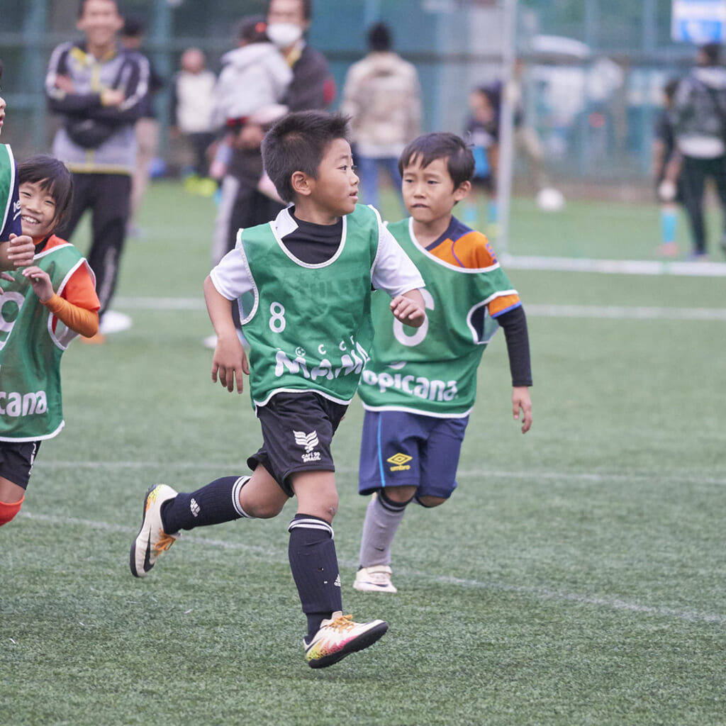 肉離れのリハビリ方法も捻挫の時と同様、徐々に行っていきます。軽度のレベルであれば、RICEの処置を行い、その後交代浴など、温めたり冷やしたりを繰り返しながら軽いストレッチなどを開始します。 受傷から2~3日で完治する、というものではないので、あまり焦らず少し時間をかけながらじっくり治す方が再発のリスクが少なくなります。スポーツへの復帰の目安として、ケガをした部位がケガをしていない部位と比較して、 ● ストレッチの角度が同じくらいできるか 同じくらいの力を入れることができるか ● 力を入れても痛みや違和感はないか 全力に近いスピードでダッシュやターン、ジャンプ、キックなどができるか。その際、痛みや違和感はないか …などクリアにしてからにします。 では、そもそもなぜ肉離れは起きるのでしょうか? 筋肉が伸ばされた状態で急に力を入れたり、突発的な力が筋肉に加えられたりして筋肉が傷ついてしまうのが原因である、とされています。他には、不十分なウォームアップやストレッチ不足、 バランスの悪い筋力、不適切なフォームなども肉離れの原因となる、といわれています。 肉離れを予防するには、まずは練習前後の十分なウォームアップやストレッチが基本です。特に冬場は筋肉の温度が上がりにくく、下がるのも早いため、十分注意が必要です。 加えて成長期の子供の身長がぐんぐん伸びている時期は筋肉が硬くなりやすいので、いつも以上にストレッチを家でも行うようにします。そして一か所に負担がかからないようにバランスよく筋力をつけ、疲労をためないようにすることも大切です。 捻挫や肉離れなどのスポーツ外傷は時間が経てば痛みや腫れが減り、そのまま放っておいてもいずれ治るものではありますが、それは傷が治癒しただけであって、サッカーが前と同じ様にできるレベルになった、ということではありません。 復帰までにやるべきことを段階的にこなしていき、ケガをする前の状態に体を近づけてから復帰するのが理想の形である、ということを覚えておいてください。 肉離れについて学びましょう