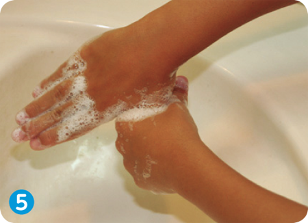 ⑤親指と手のひらをねじり洗いする。
