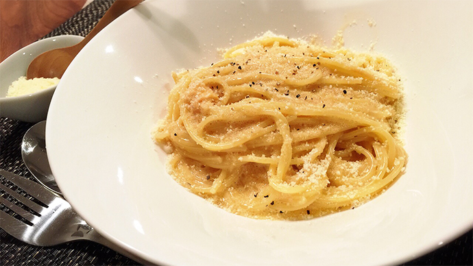 ⑤ ④を①ボウルに入れ混ぜたら皿に盛り、粉チーズをかけて完成です。塩コショウはお好みで。