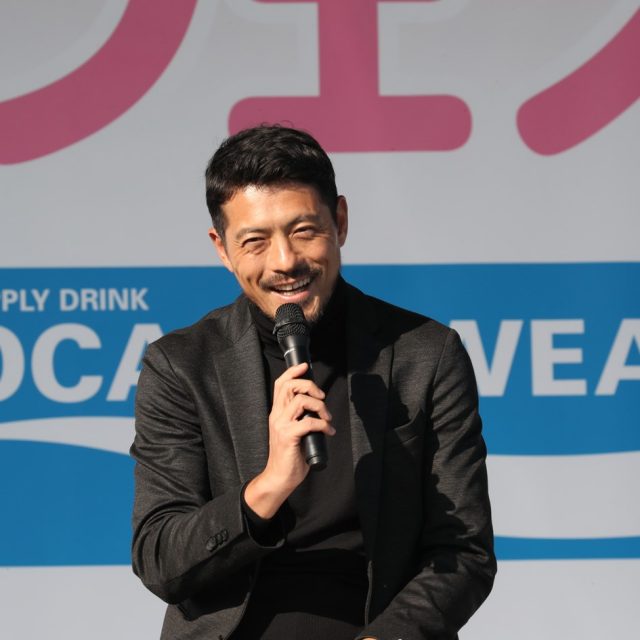 元サッカー日本代表、鈴木啓太さんをゲストに招き、正しい水分補給についてのトークショーを行いました。さらに〇×クイズ大会も実施し、勝ち残ったキッズには鈴木さんから豪華な水分補給セットが手渡されました。
