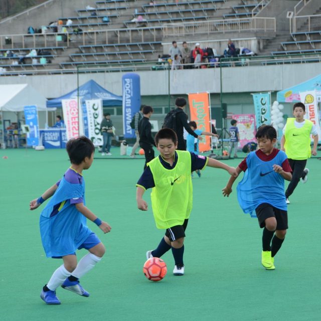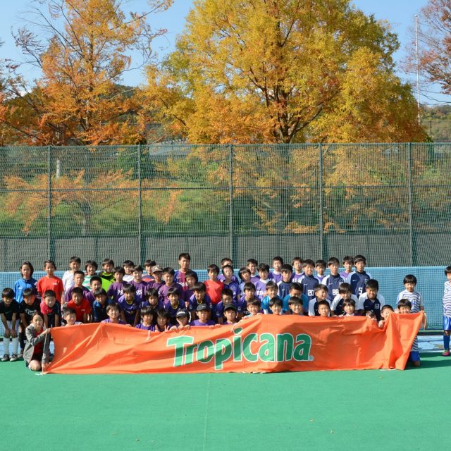 U-10、U-12のカテゴリーにわかれ、64名の選手が参加。U-10はPK戦のすえ優勝が決まり、U-12は、予選から圧倒的な強さをみせたチームが王者に。ハーフタイムには、オレンジジュースを配布し、ミニセミナー 親子で学べる「くだものの力」も実施。第3位、準優勝、優勝チームは、ステージで表彰を行い、トロピカーナ製品が贈られました。