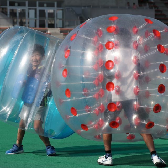 今回も大人気だったバブルサッカー。相手とぶつかり合いながら、声を上げて転げまわっていました。