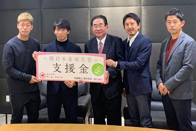 多くのJリーガーにご協力いただき、サカママWEBで支援金を募りました。17日には、広島テレビにて佐藤選手、橋本選手、野津田選手とともに贈呈式に参加しました。