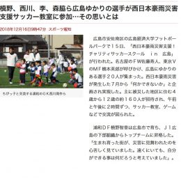2018年7月に広島県を中心とする中国地方で発生した豪雨災害。 サカママでは、この被害を受けた広島を支援しようと、東京ヴェルディの橋本英郎選手・名古屋グランパスの佐藤寿人選手と協力して支援金の募集やチャリティサッカースクールを実施しました。 12月15日・16日の両日で計22名ものサッカー選手が広島に集結し、延べ300名以上のお子さんと一緒にボールを蹴りました。