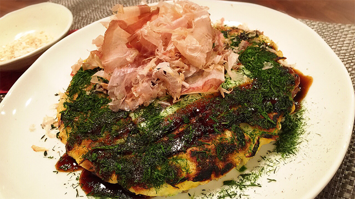 桜エビと豆腐入のお好み焼き