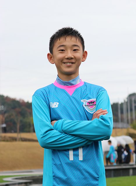 流れを変えるプレーヤーでありたい 「1次ラウンド・明治北SSC戦では後半から入って、僕で流れを変えたいと思っていたので、得点を決められて良かったです。ドリブルを得意にしているので、自分から仕掛けて好機を作ることが役割だと思っています。1時間かけて練習に行くのですが、毎日送り迎えをしてくれている両親に感謝しています。(将来の夢は)メッシ選手のように世界一のプレーヤーになりたいです」
