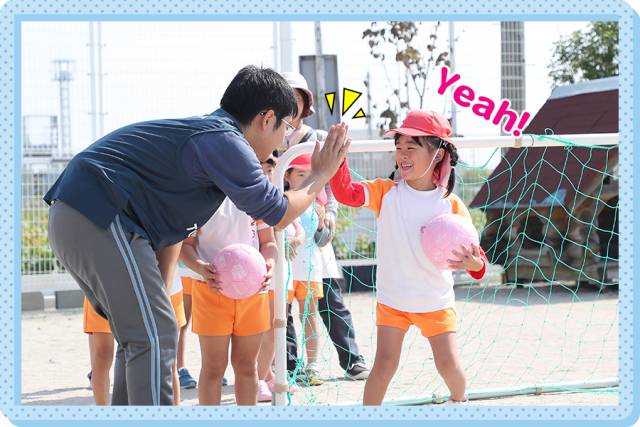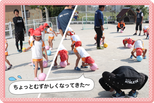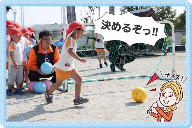普段、あまり外で遊んでいない園児も、コーチたちの熱心な指導のおかげで、今日はボールを使って楽しそうに体を動かしていたのが印象的でした。この取り組みをきっかけに、外遊びも好きになってくれたらと思います。