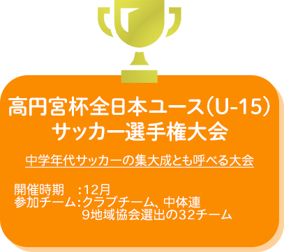 そしてこの「中体連」と「クラブチーム」が、同じ条件で出場できるのが「高円宮杯全日本ユース(U-15)サッカー選手権大会」です。