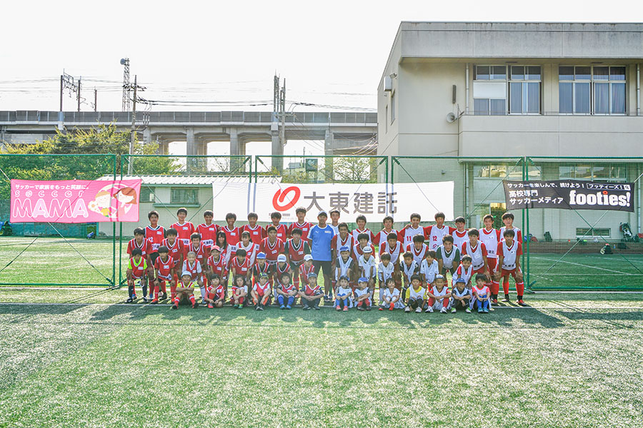 10月5日(土)、サッカー日本代表のサポーティングカンパニーでもある大東建託株式会社による、サッカーを通した地域住民の交流促進を目的とした「大東建託ふれあいサッカースクールin埼玉」が、さいたま市立浦和南高校サッカー部協力のもとで開催されました。 イベントは昨年度17年ぶりに全国選手権への帰還を果たした「赤き血のイレブン」浦和南高校サッカー部のメンバーに加え、ゲストコーチに元日本代表FWで地元浦和レッズで長年活躍した「ミスターレッズ」福田正博さんを招き、小学生低学年30名が参加しました。 子供たちは優しいお兄さん、お姉さんに1対1で指導を受けながら笑顔でプレー。なかなか子供たちとふれあうことのない高校生にとっても得るものは大きかったようで、実りの多いイベントとなりました。