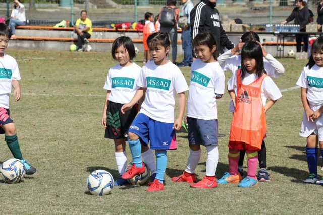 2015年4月からサッカー日本代表を応援するMS&AD グループと日本サッカー協会(JFA)との共催で行われたMS&AD サッカー教室。これまでも、日本代表戦の前にサッカー教室が開かれ、今回は11月10日に北九州スタジアムで行われた「MS&AD カップ2019 なでしこジャパンvs 南アフリカ女子代表」に先駆けて実施されました。