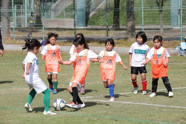 このサッカー教室の特徴の一つは、女の子の参加人数枠を多く設けていること。実際にこの日も、93人の参加者のうち、85人が女の子。子どもたちは、様々なトレーニングやミニゲームで、約90分間、思う存分サッカーを楽しんでいた様子。この中から、未来のなでしこを担う選手が誕生するかも!?