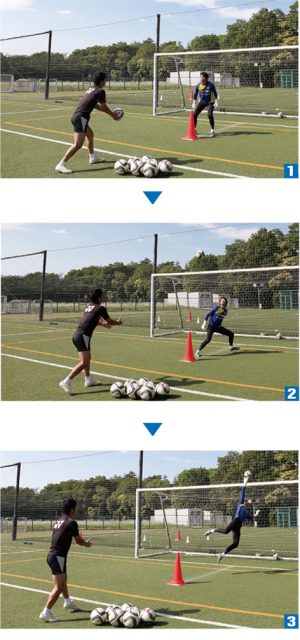 ループシュートにおけるGKの対応と反応を鍛えるトレーニング