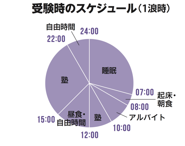 浪人生活では大手の予備校に通うことなく、現役時代と同様に地元の個人塾を選びました。一人で黙々と勉強するのが性に合っていたんだと思います。親にお金を借りたくなかったので、平日は朝の8時から10時までコンビニでバイトをしてから塾に行くようにしていました(※1日のスケジュールを参照)。良い気分転換にもなるし、全国の浪人生の皆さんにも早朝バイトはおススメします(笑)。また、生活が単調にならないように夜はランニングし、毎日手帳を書いていました。日記のように何時から何の勉強をしたかを記し、最後に自戒を込めて一口メモを添える。これを習慣にすると、一日を手抜きできないようになります。