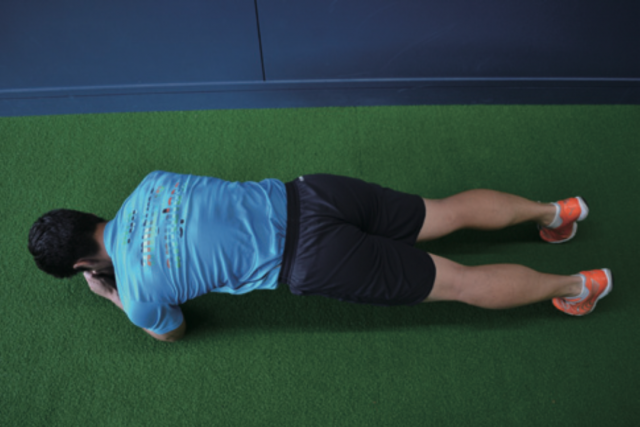 体幹を鍛えるには、正しい姿勢を保つのが一番の近道です。今回は、家でもできる最も基本となるトレーニングを紹介しましょう。地面に両肘を立て、肘と足で身体全 体を支えるように姿勢を維持してください。このとき大切なのが、腕と足だけで身体を支えようとするのではなく、大殿筋に力を入れること。そうすると、自然と腹筋や背筋も使い体勢をキープしようとする力が働くことでしょう。体幹トレーニングは無理せず、毎日続けることが重要です。最初は30秒からスタートし、慣れてきたら時間を徐々に増やしていってください。