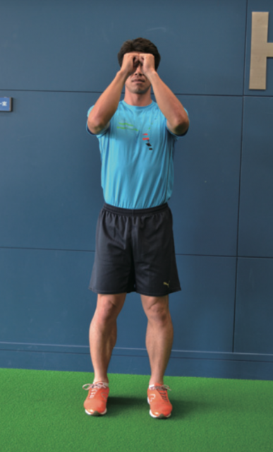 手が顔の真下にくるように。また、下から見ると肩幅と両足の幅が揃っていることもよくわかる。