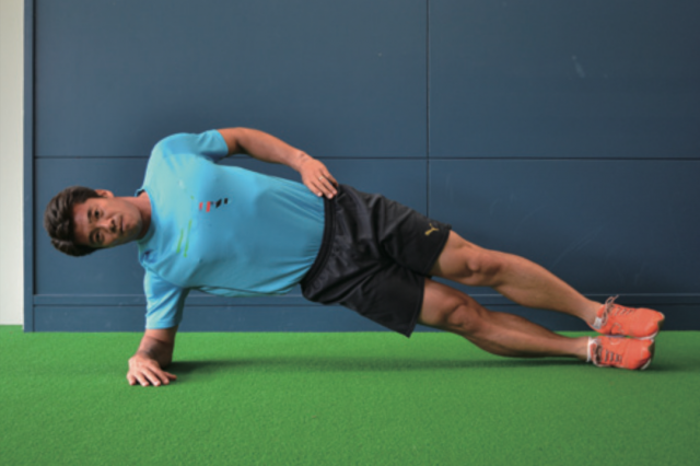 片肘を立て全身で姿勢を保つ 左右バランスよく取り組もう!