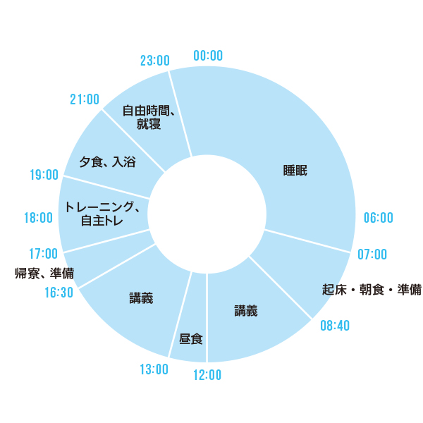 月曜から金曜は8時40分から講義で、17:00からトレーニング、土、日の週末は午前もしくは午後に試合があり、ない場合はオフになります。寮もグラウンドも筑波大学のキャンパス内にあるので、遠方には出ず、週末を含めてキャンパス内で過ごすことが多いです。 ※この記事は2017年4月に掲載したものです。