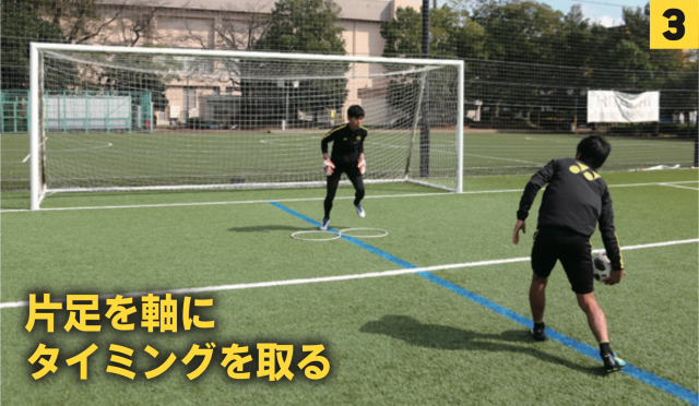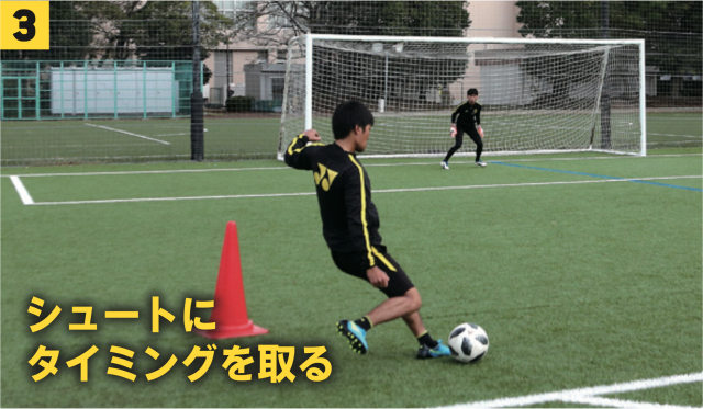 ❸シュートに対してタイミングを合わせる
