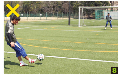 ボールを蹴られても、足が地面に着いていない選手が多く見られる。自分のプレーを動画で撮るなど、アイテムを活用してチェックするのもいいでしょう。