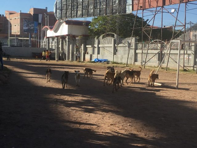 最後の一枚は番外編。グランドにたくさんの犬、犬、犬…。