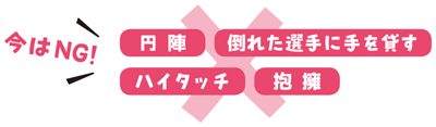 試合前と試合後、相手チームや審判団との握手は実施せず、両チームベンチへの挨拶も行わないことです。