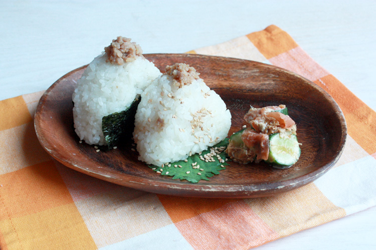 【サカママレシピ】にんにく肉味噌おにぎりとマヨおかか梅きゅうり