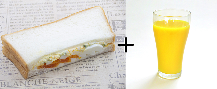 • サンドウィッチ(たまごなど)+オレンジジュース