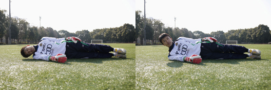 人の頭の重さは、体重の約10~15%だそうです。ポジションを修正する際には、頭にも体重がかかり、多少なりとも頭がぶれ、“視点”にも影響を与えます。シュートに素早く視点が合えば対応できる範囲も広がっていく可能性が高くなります。視点がぶれないために、頭を支える首の筋力を強化しましょう。