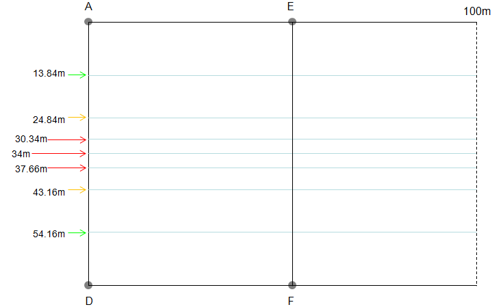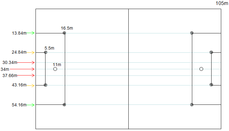 - ゴールポストの中央 … 34m