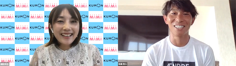 オンラインならではの近さがあり、佐藤選手の親としての子どもへの関わり方も聞くことができ、とてもいい時間でした。息子はKUMONに通い始めて5年目。今では自然に毎日、机に向かうようになり、サッカーの予定をみて、宿題に取りかかる時間の調整までできるように。KUMONで培った毎日積み重ねる力がサッカーにも反映されています!