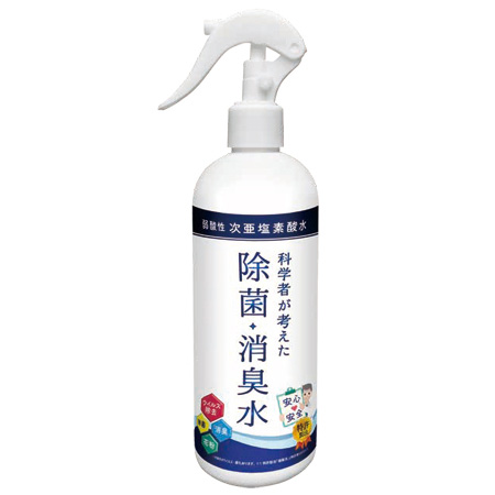次亜塩素酸水は、厚生労働省から食品への殺菌料として認められている高い除菌・ウイルス除去の効力を持つ物質。体への影響が少なく、濃度を調整しても除菌・消臭作用を発揮します。