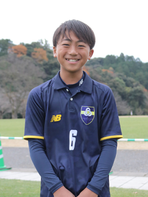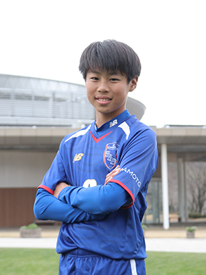 「ストロングポイントは、中盤の低い位置から周りを見て、気づいたスペースに仲間を動かしたり、パスをしたりすることです。全国大会はすごくレベルが高く、通用することろ、しないところがわかっていい経験になりました。送り迎えなどをしてくれたお母さん、試合をビデオに撮り、反省点などを細かく教えてくれるお父さんには感謝しています。また、アドバイスや注意、試合の分析などをしてくれるコーチたちにも感謝してます。清水エスパルスのジュニアユースに進むことが決まっているので、これからも頑張ります」