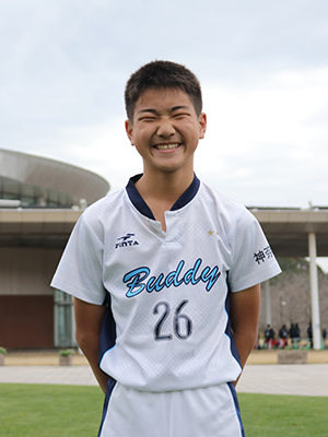 「全国大会では自分たちより強いチームがたくさんいることに気づけ、また自分がどれだけ全国で通用するのかも知ることができました。コーチは、いいプレー、悪いプレーを指摘してくれ、チームをまとめてくれるのでありがたいです。将来は、自分の行動で多くの人を笑顔にし、喜ばすことができたらいいなと思っています。お父さん、お母さん、私のためにサッカーに尽くしてくれてありがとう」