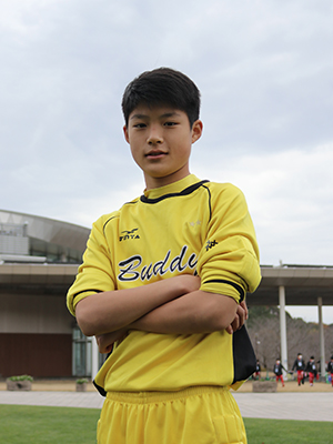 「縦に突破して左足でゴールを決めることが強みだと思っています。監督やコーチ、父は僕が調子が悪いときに『お前ならできる』と励ましてくれました。将来の目標はプロサッカー選手になることです」