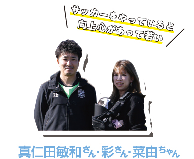 今回の応援は、旅行気分で帯同させていただきました(笑)。サッカーをやっている方をみていると、体力や向上心もあるし、とにかく若い! 主人にもずっとそうあってほしいので、これからもサッカーを続けてほしいと思っています。