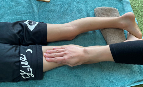 ①で確認した時と、②~④を行った後の筋肉の柔らかさの違いを実感してください。ケアする前より、ふわふわしていて指が中にぐ~っと入っていく感じがしませんか? また、お子さまに足が軽くなったように感じないかぜひ聞いてみてください。