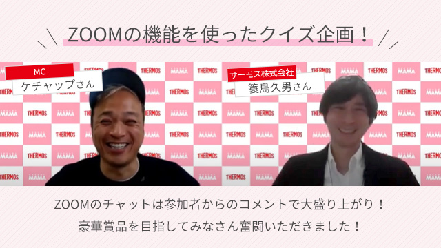 ZOOMの機能を使ったクイズ企画! 全問正解者には「取っ手のとれるフライパン5点セット」、1問のみ不正解で「真空断熱ケータイマグ」をプレゼントされます。
