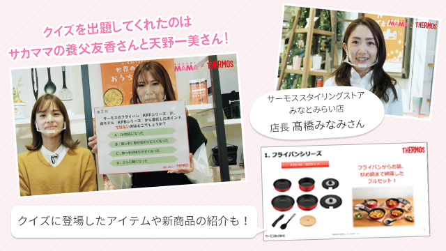 クイズはサーモス スタイリングストア みなとみらい店で収録した映像から出題。かなりマニアックな問題には「難しすぎる!」という声も聞こえましたが、さすがサカママのみなさん! 正答率も高く、チャットは大いに盛り上がりました。