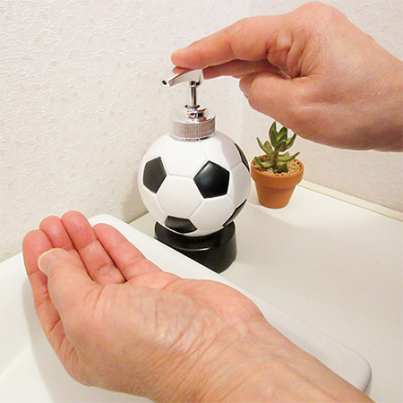 外出後の入念な手洗いが欠かせなくなった今こそ欲しい!手洗いの時間が楽しくなりそうなサッカーボール型のソープディスペンサー。このディスペンサー、サッカーボール型になっているだけではなく、ポンプをプッシュすると、その振動で「ゴール」と音声が出る仕組みになっています! これなら子ども達も楽しく手洗いができそうですよね。思わず何回もプッシュして使いすぎてしまわないように注意です! 各種通販サイトや量販店で販売しているので、気になる方は探してみて!