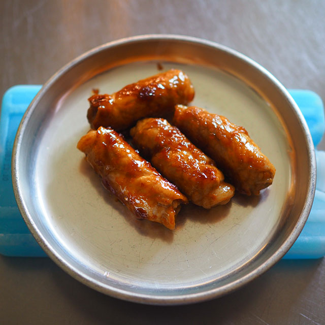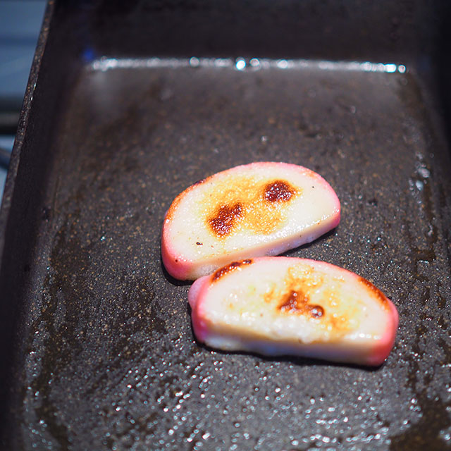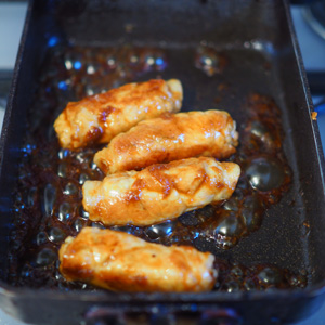 1. フライパンにサラダ油を入れ中火にし、巻き終わりから焼き、全体に火を通す。