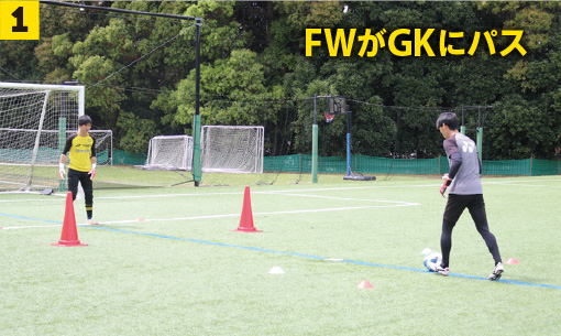 ❶FWがGKにパス