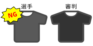 シャツの色は、審判員が通常着用する黒色と明確に判別し得るものでなければなりません。濃紺や黒地に線の細い縦縞や、雨で濡れたり、暗くなったりすると黒色とわかりにくくなる色は、審判員の黒色と明確に判別しづらいので避けなければなりません。