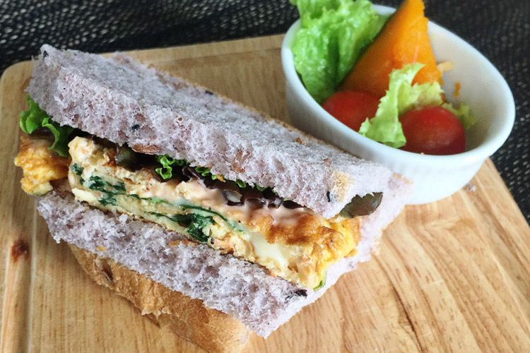 3. レタスとオムレツをサンドしたら完成です。